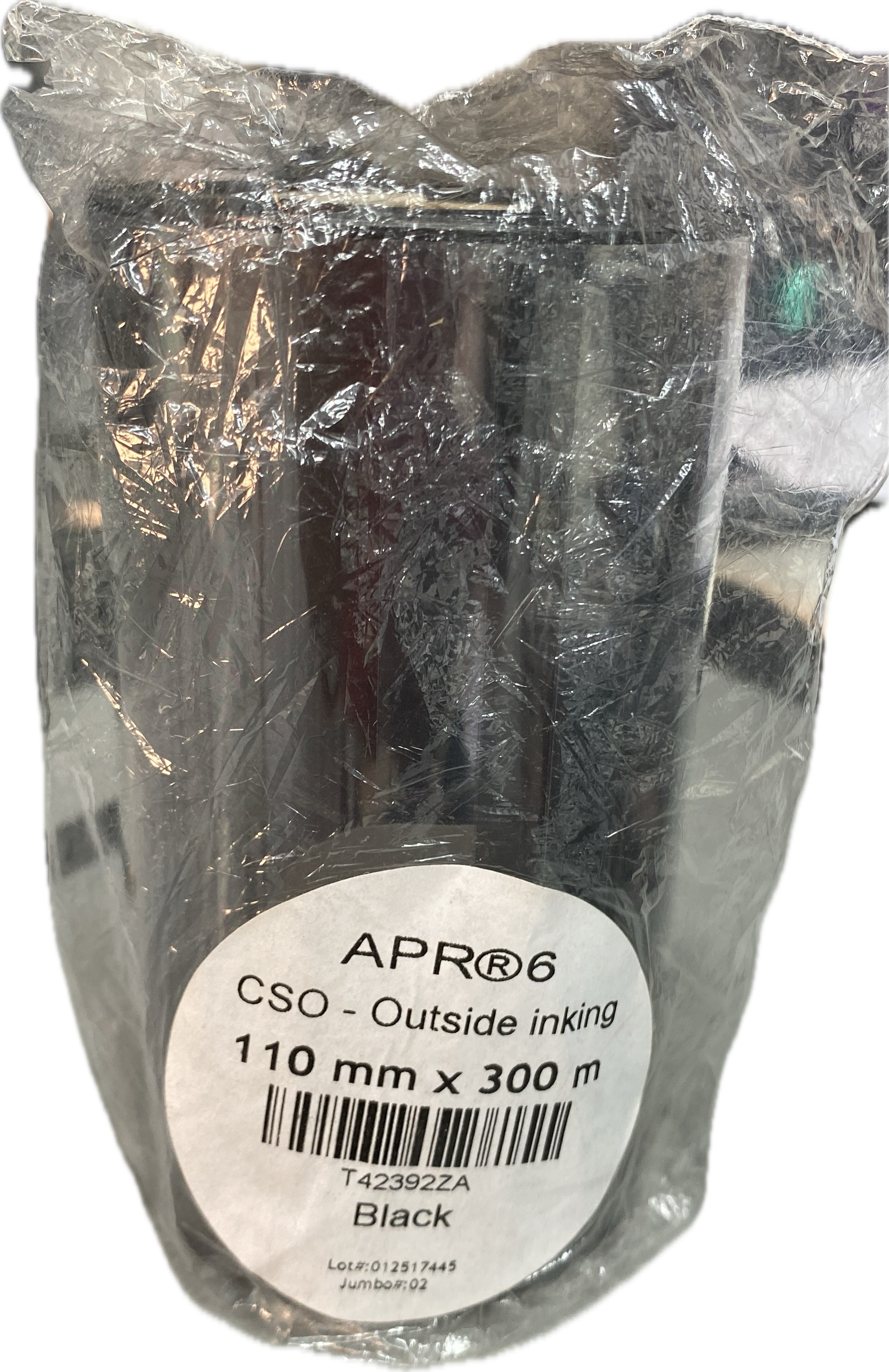High-durability CSO black resin ribbon 110mm x 300m for industrial thermal transfer printers. Ideal for outdoor, chemical-resistant signage and labels.